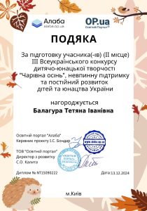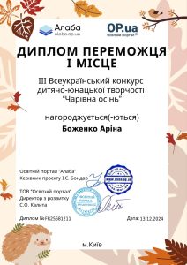 Переможці ІІІ Всеукраїнському конкурсі дитячо-юнацької творчості “Чарівна осінь”